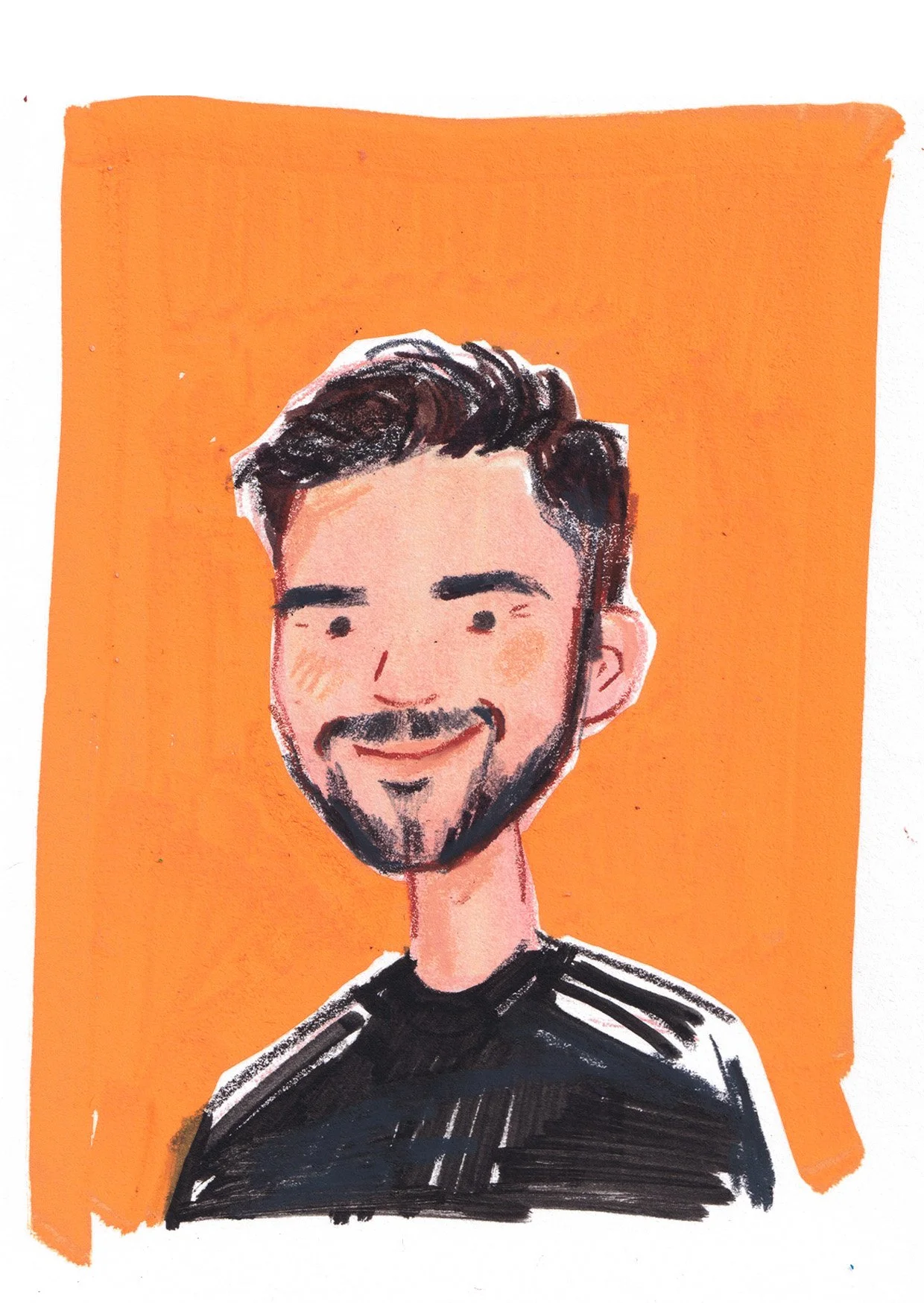 Maximum 2 people per illustration. Best photos are head-on, without any accessories that you don’t want me to draw.